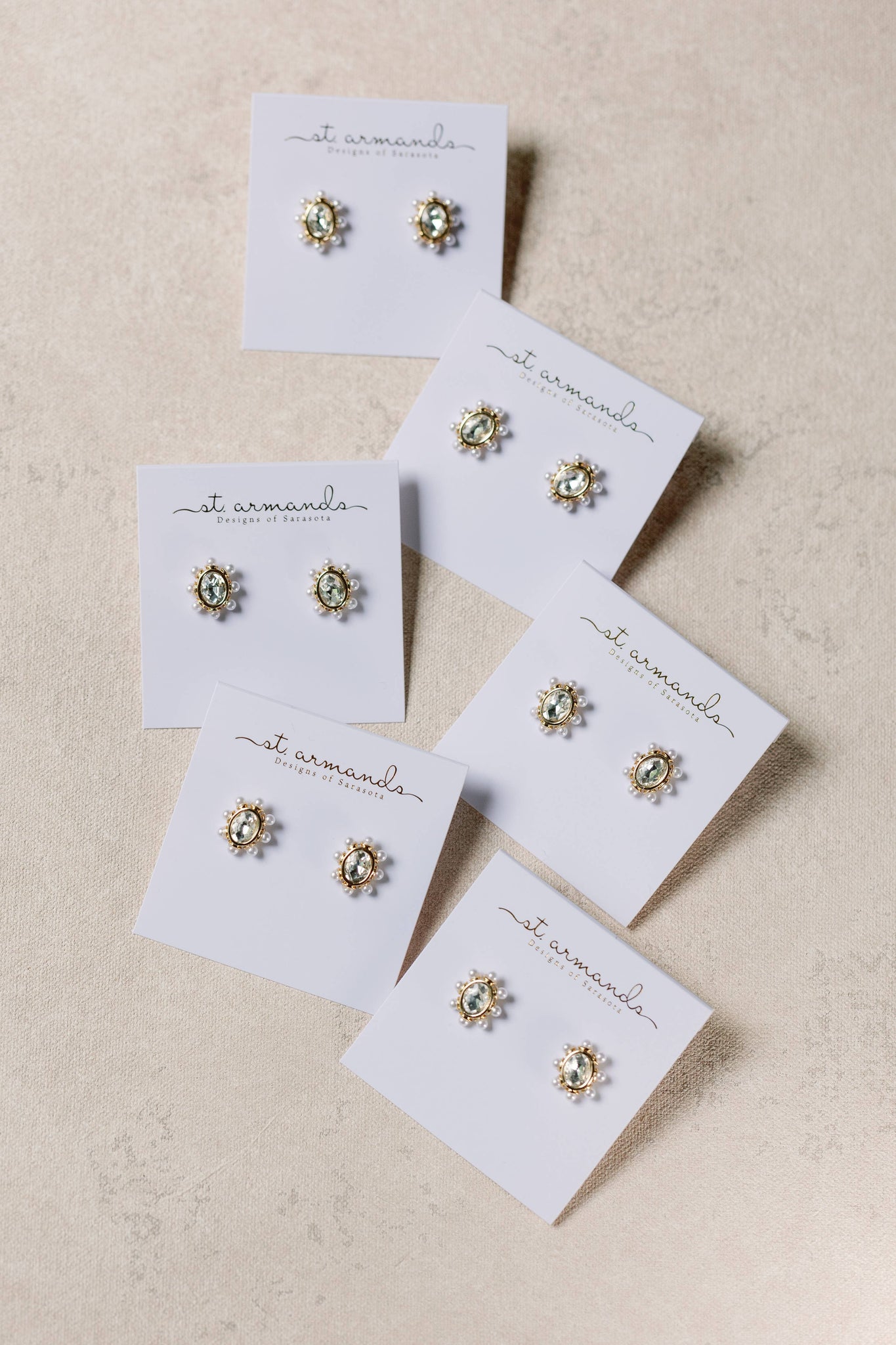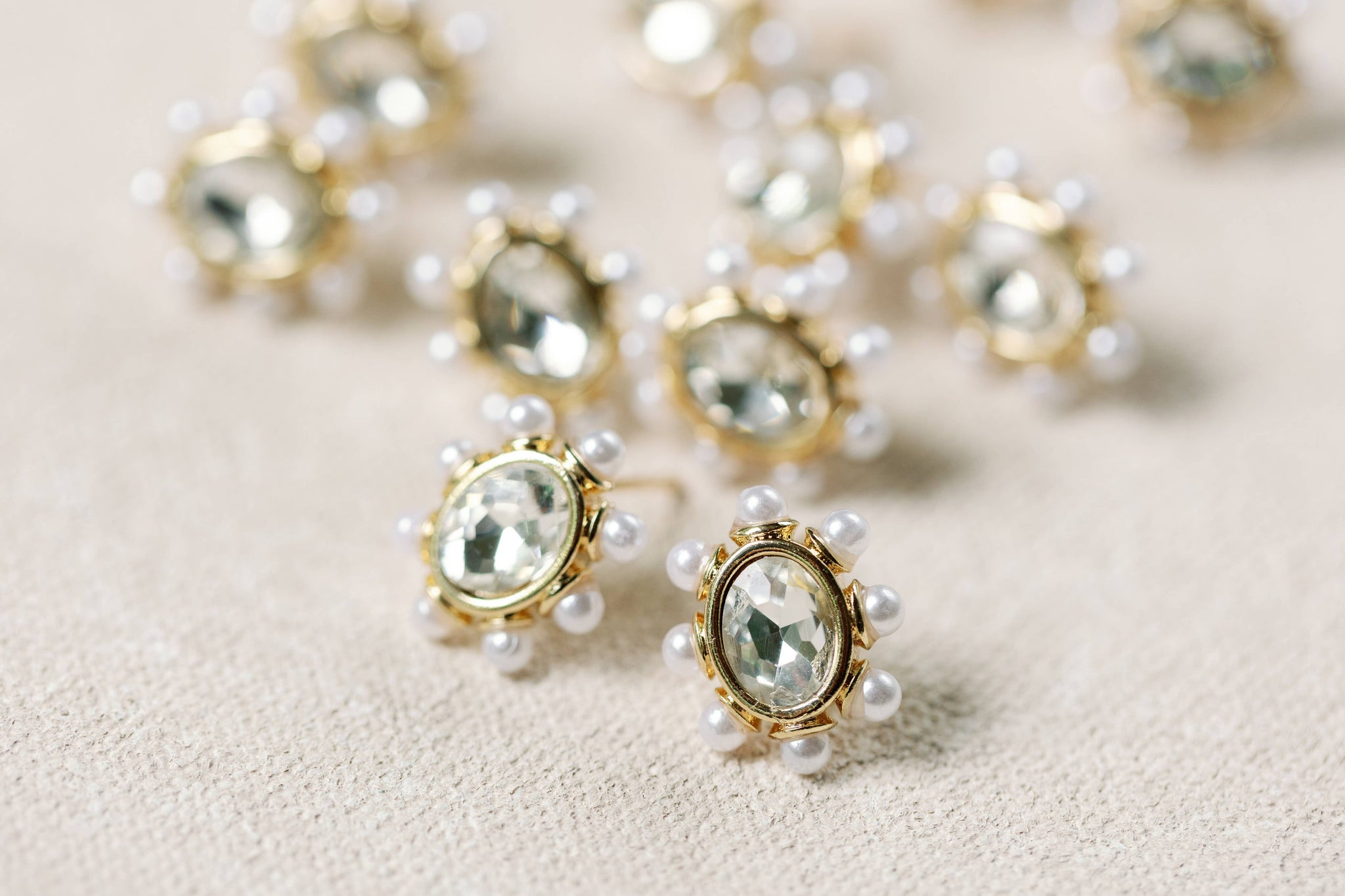 Vintage gold tones are among this year's biggest trends, and we are delighted to introduce our newest stud earrings featuring a crystal center, outlined by delicate pearls. This mini style, perfect for everyday wear, is 1/2 inch in size and perfect for all seasons.