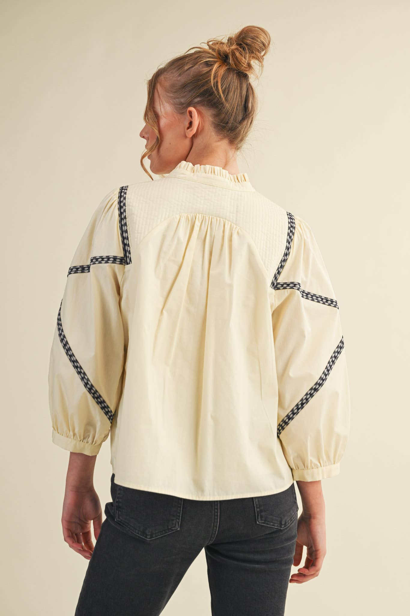 + Embroidery trim babydoll blouse