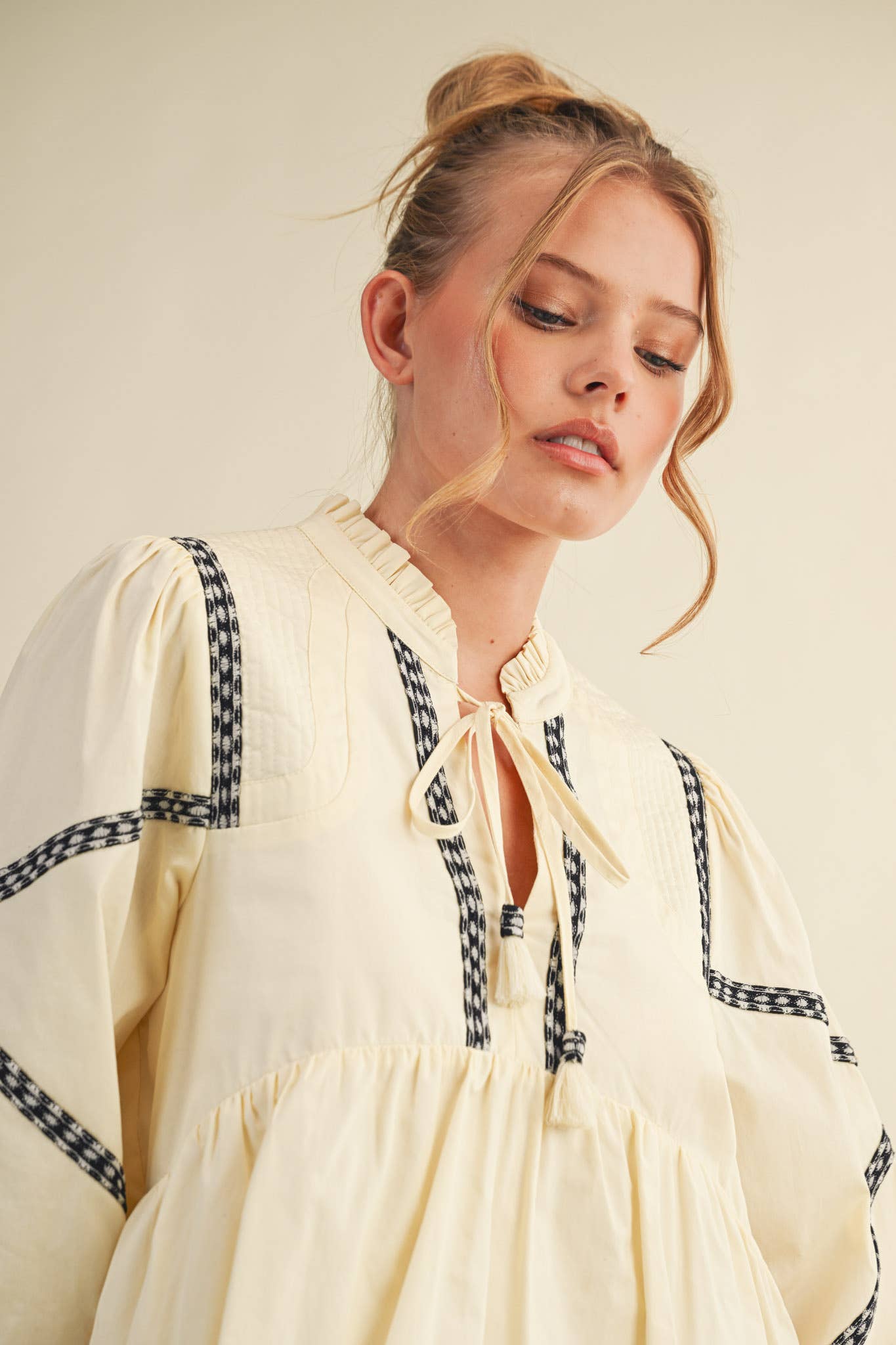 + Embroidery trim detail on neckline and sleeves