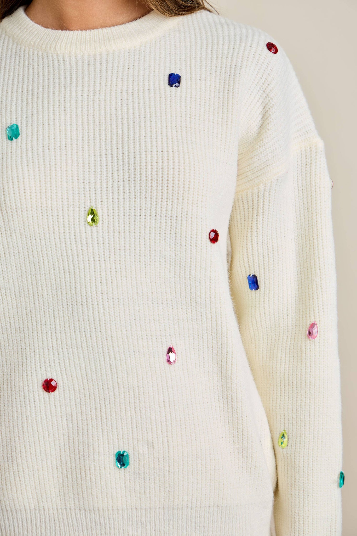 Product Details: - Crew Neck - Drop Shoulder - Long Sleeves - Color Stones
