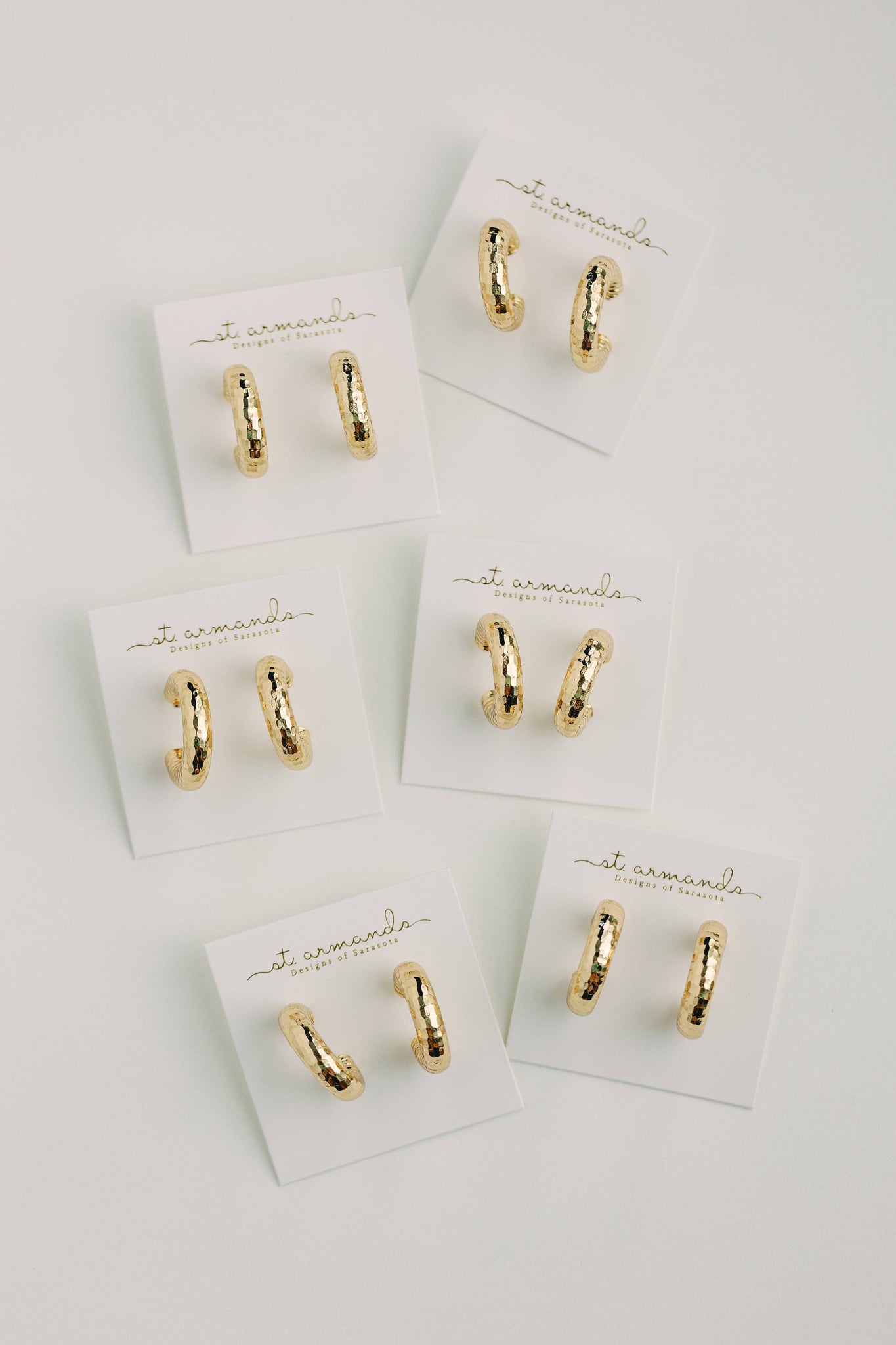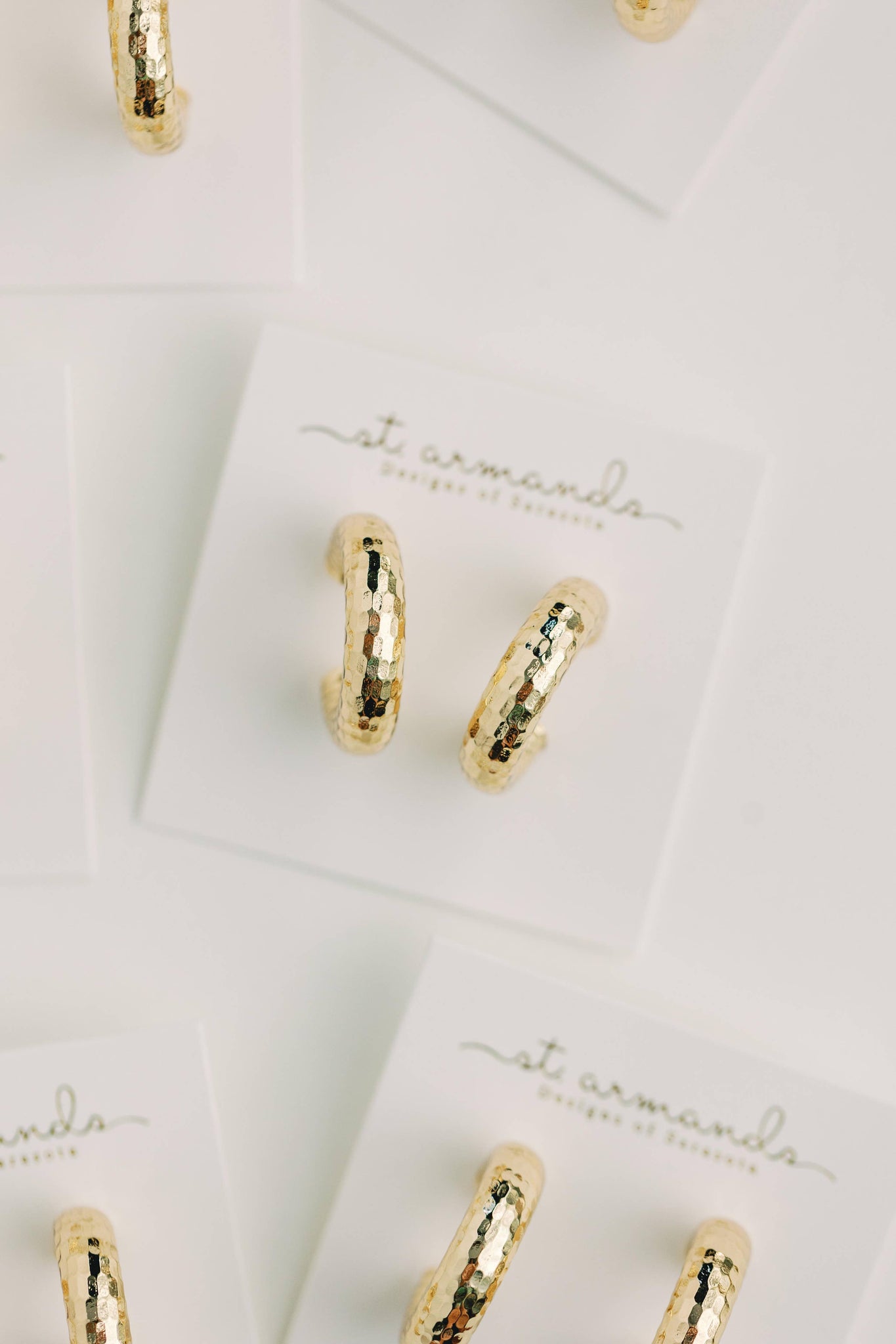 Exquisite thick hammered gold hoop earrings are the epitome of vintage glamour! Measuring 1 inch in drop, these lightweight hoops ensure comfort while making a stunning statement!