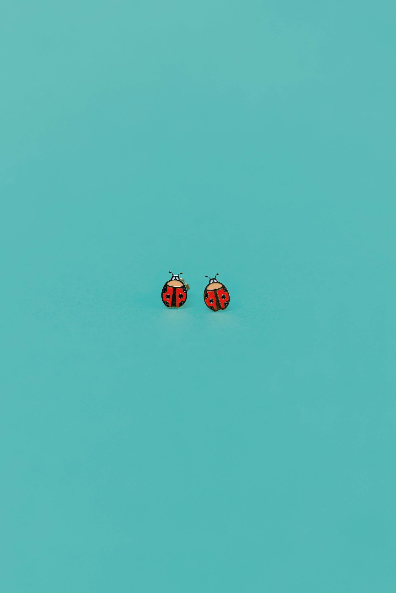 • Load image into Gallery viewer, Ladybug Enamel Flat Back Kids Earrings
