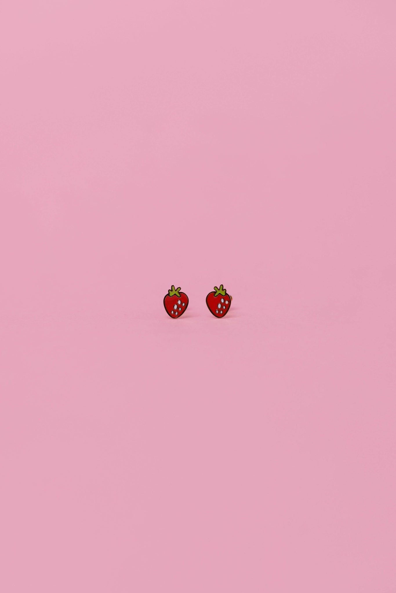 • Load image into Gallery viewer, Strawberry Enamel Flat Back Kids Earrings