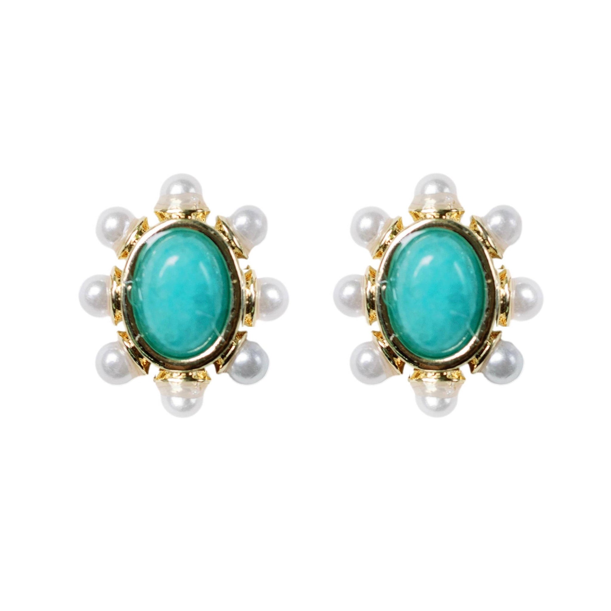 Turquoise and Pearl Oval Stud Earrings